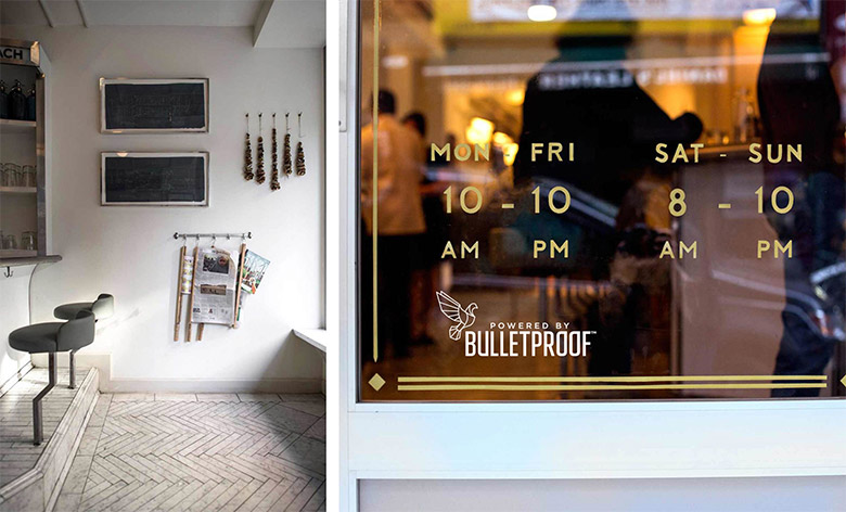 防彈咖啡品牌創(chuàng)自美國舊金山硅谷,創(chuàng)始人戴夫·亞斯普雷是一位怪才,不僅是一名成功的企業(yè)家,還玩得一手好咖啡。戴夫·亞斯普雷早年和西藏結下了緣分,并從西藏傳統(tǒng)的酥油茶汲取靈感,咖啡上添加奶油提的創(chuàng)意迅速風靡硅谷和好萊塢。防彈咖啡英文名叫做Bulletproof Coffee,忠實粉絲囊括了科技公司的CEO、明星、運動員等。防彈咖啡的LOGO設計可以從早期圖形中感受到濃濃的藏文化氣息,特別是配色,而全新升級的VI設計似乎已經找不到這一元素。防彈咖啡作為一名快速躥紅的熱門網紅怎么可以沒有門店呢,2015年初,戴夫·亞斯普雷在美國洛杉磯開辦一家獨立的防彈咖啡店,咖啡館VI設計新的形象也全新問世。